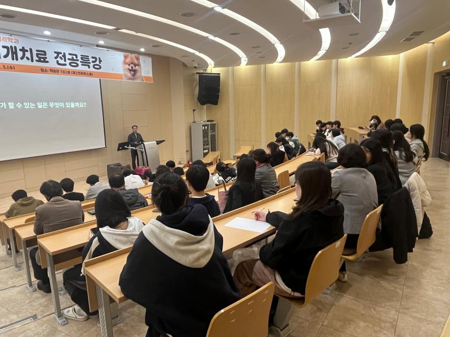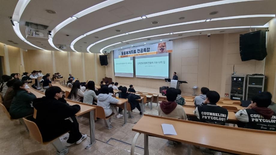 본문 시작 홈으로 학과 커뮤니티 학부소개 교수소개 교육목표 입학안내 학과 커뮤니티 대학원 커뮤니티 홈페이지가이드 학과 갤러리 학과소식 학사일정 학과 갤러리 학과 갤러리 페이스북 트위터 프린트 동물매개치료 전공특강 상담심리학과 411 2025-11-10 안녕하세요 세명대학교 상담심리학과입니다! 지난 5일 학술관 컨퍼런스홀에서 동물매개치료 전공특강이 진행되었습니다! 동물매개치료 관련 이론을 배우며 전공 능력을 함양할 수 있는 뜻깊은 시간이었습니다 :) 목록 다음 2025학년도 Step Up! SMU창업캠프 및 경진대회 다음 나와 어울리는 심리이론은? 만족도조사 만족도 조사 이 페이지에서 제공하는 정보에 대하여 만족하시나요? 매우만족 만족 보통 불만족 매우불만족