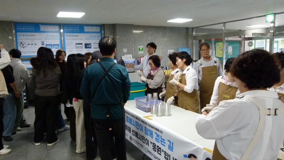 본문 시작 홈으로 커뮤니티 학과소개 교수소개 교육과정 현장실습 및 취업정보 커뮤니티 홈페이지가이드 포토갤러리 학과공지 학사일정 학생회 동아리 학생 소통 광장 포토갤러리 전공자료실 서식자료실 포토갤러리 페이스북 트위터 프린트 [사회복지학과] 중간고사 응원 간식 나눔 이벤트 진행 사회복지학과 923 2025-11-05 제천시실버복지관에서 학생들의 중간고사를 응원하기 위해 간식 나눔 이벤트를 진행해주셨습니다. 목록 이전[학생회] '우리 내일 놀래?' 행사 진행 다음 [사회복지학과] 찾아가는 통계 특강 진행 만족도조사 만족도 조사 이 페이지에서 제공하는 정보에 대하여 만족하시나요? 매우만족 만족 보통 불만족 매우불만족