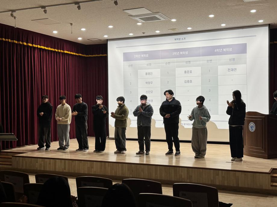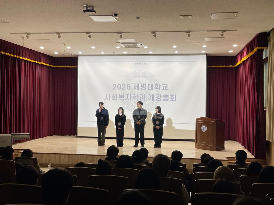 본문 시작 홈으로 커뮤니티 학과소개 교수소개 교육과정 현장실습 및 취업정보 커뮤니티 홈페이지가이드 포토갤러리 학과공지 학사일정 학생회 동아리 학생 소통 광장 포토갤러리 전공자료실 서식자료실 포토갤러리 페이스북 트위터 프린트 [사회복지학과] 2026학년도 개강총회 사회복지학과 55 2026-03-30 일시: 2026. 3. 18. 17:00 장소: 세명대학교 민송도서관 시청각실 지난 3월 18일, 2026학년도 새학기를 맞이하여 사회복지학과 개강총회가 진행되었습니다. 목록 이전[사회과학대학] 제 9회 사회과학대학 토론대회 수상 다음 [사회복지학과] 2026학년도 신입생 환영회 만족도조사 만족도 조사 이 페이지에서 제공하는 정보에 대하여 만족하시나요? 매우만족 만족 보통 불만족 매우불만족